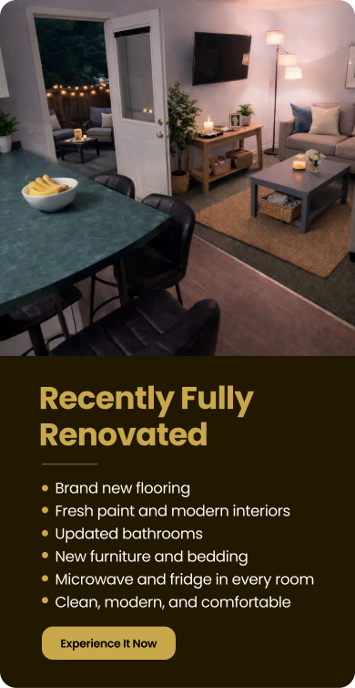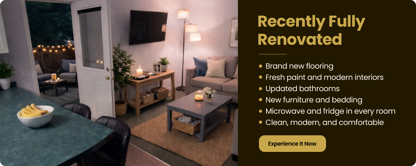 Newly renovated with modern amenities for your comfort Recently Fully Renovated